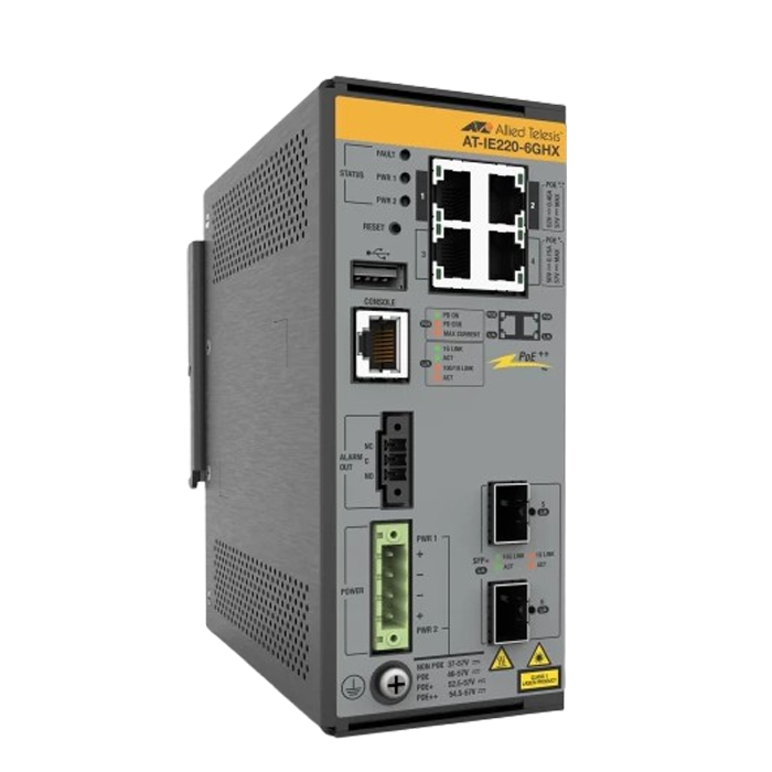 [IE220-6GHX] Allied Telesis Industrial Ethernet Layer 2+ PoE++ Switches with 10G uplinks