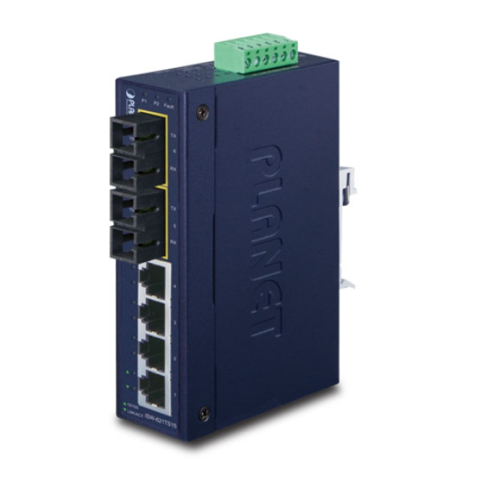 [ISW-621TS15] Planet Industrial 4+2 100FX Port Single-mode Industrial Ethernet Switch - 20km (-40~75 degrees C operating temperature)