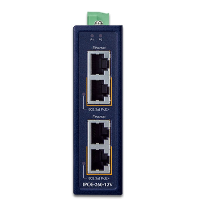 [IPOE-260-12V] Planet Industrial 2-port 10/100/1000T 802.3at PoE+ Injector Hub