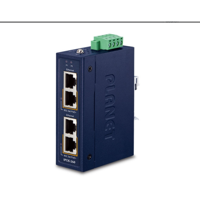 [IPOE-260] Planet Industrial 2-port 10/100/1000T 802.3at PoE+ Injector Hub