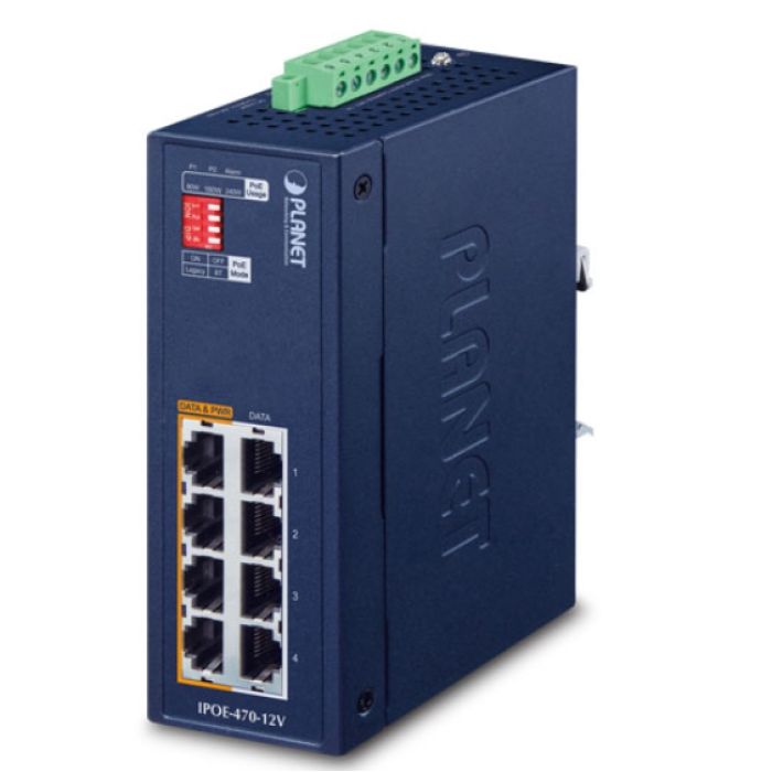 [IPOE-470-12V] Planet Industrial 4-port Multi-Gigabit 802.3bt PoE++ Injector Hub w/ 12V Booster