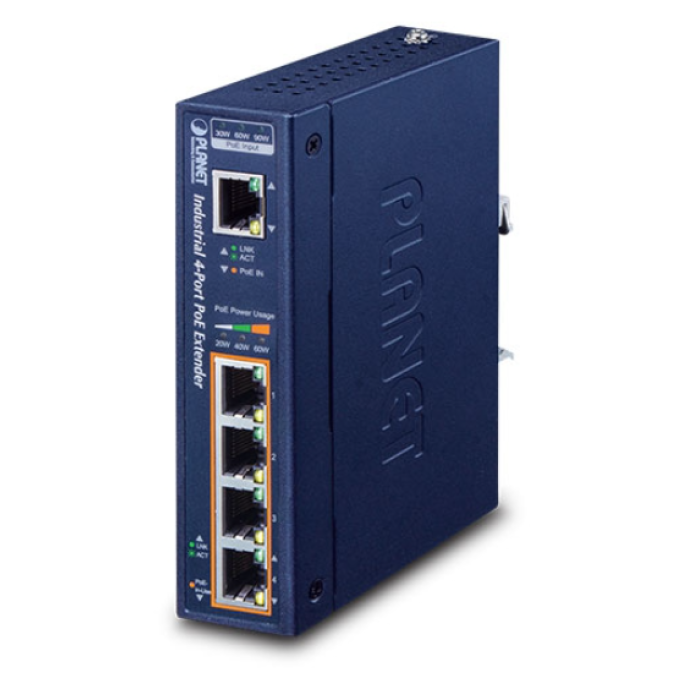 [IPOE-E174] Planet Industrial 1-Port 802.3bt PoE++ to 4-Port 802.3af/at Gigabit PoE Extender