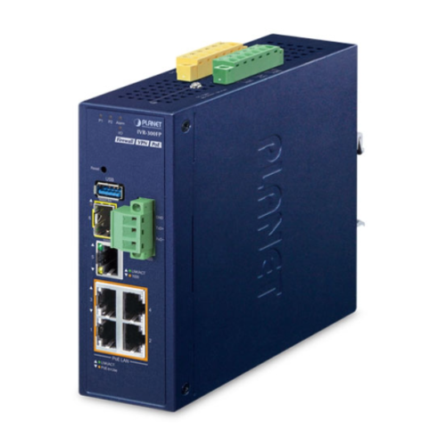 [IVR-300FP] Planet Industrial 4-Port 10/100/1000T 802.3at PoE + 1-Port 10/100/1000T + 1-Port 1000X SFP VPN Security Gateway