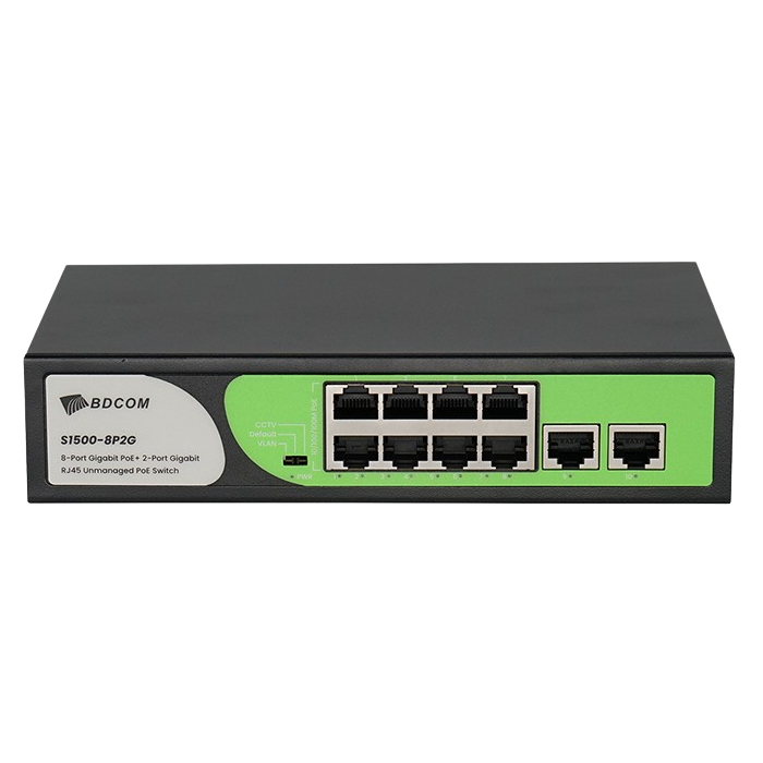 [S1500-8P2G] BDCOM 8-Port Gigabit PoE+ 2-Port Gigabit uplink RJ45 Unmanaged PoE Switch