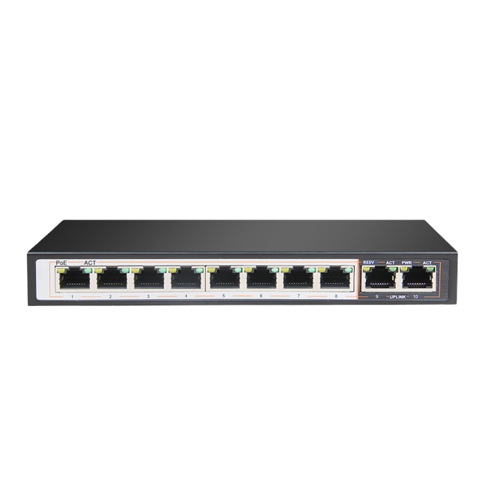 8 Ports (Downlink) 10/100/1000 Mbps PoE support up to 250 Meter