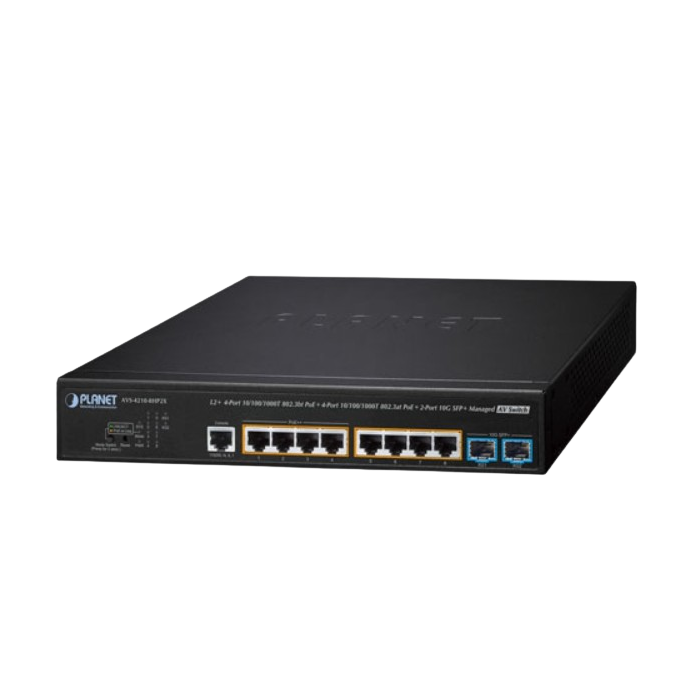 [AVS-4210-8HP2X] Planet L2+ 4-Port 10/100/1000T 802.3bt PoE + 4-Port 10/100/1000T 802.3at PoE + 2-Port 10G SFP+ Managed AV Switch