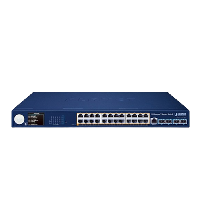 [GS-6311-24P4XV] Planet Layer L3 24-Port 10/100/1000T 802.3at PoE + 4-Port 10G SFP+ Managed Ethernet Switch with Smart LCD Screen