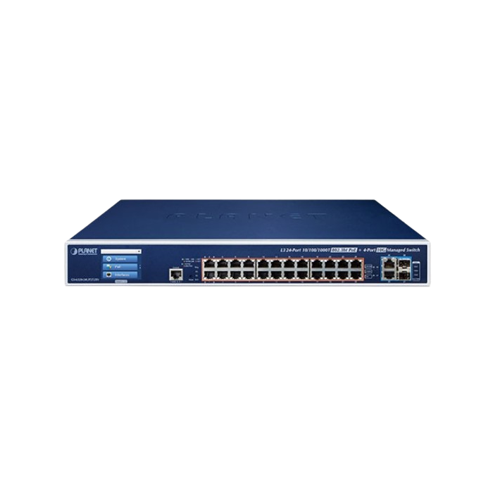 [GS-6320-24UP2T2XV] Planet Layer L3 24-Port 10/100/1000T 802.3bt PoE + 2-Port 10GBASE-T + 2-Port 10G SFP+ Managed Switch with LCD Touch Screen and Redundant Power