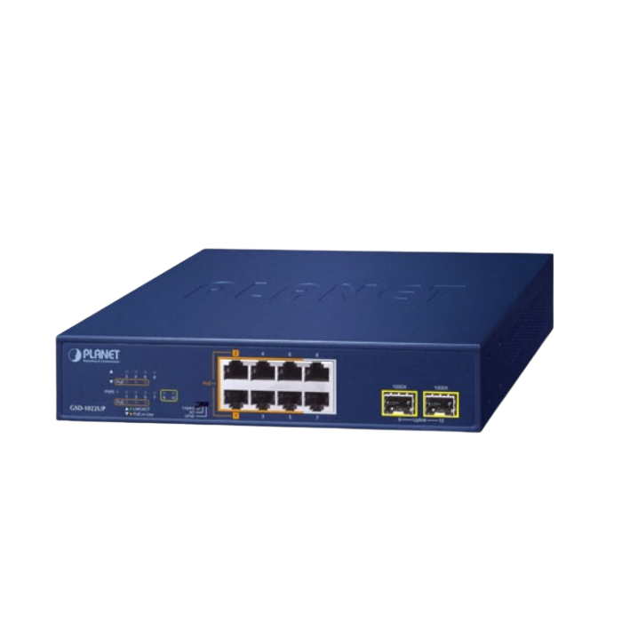 [GSD-1022UP] Planet 2-Port 10/100/1000T 802.3bt PoE + 4-Port 10/100/1000T 802.3at PoE + 2-Port 10/100/1000T + 2-Port 1000X SFP Desktop Switch