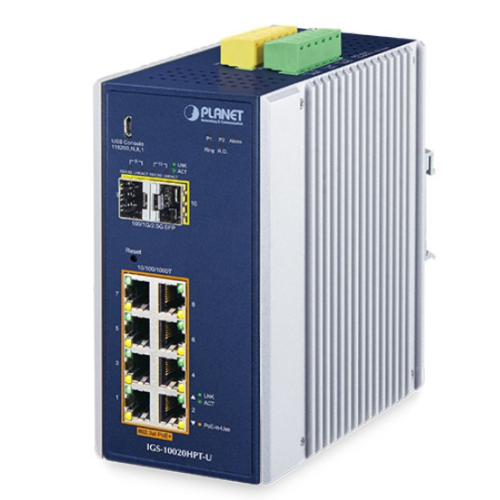 [IGS-10020HPT-U] Planet Industrial 8-port 10/100/1000T 802.3at PoE + 2-port 1G/2.5G SFP Managed Switch