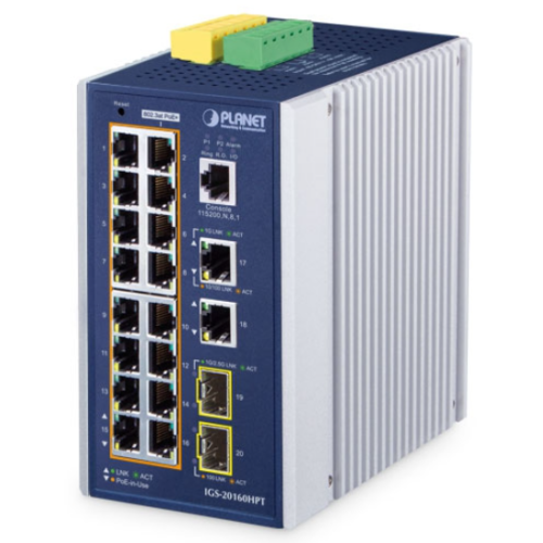 [IGS-20160HPT] Planet Industrial L3 16-Port 10/100/1000T 802.3at PoE + 2-Port 10/100/1000T + 2-Port 1G/2.5G SFP Managed Ethernet Switch