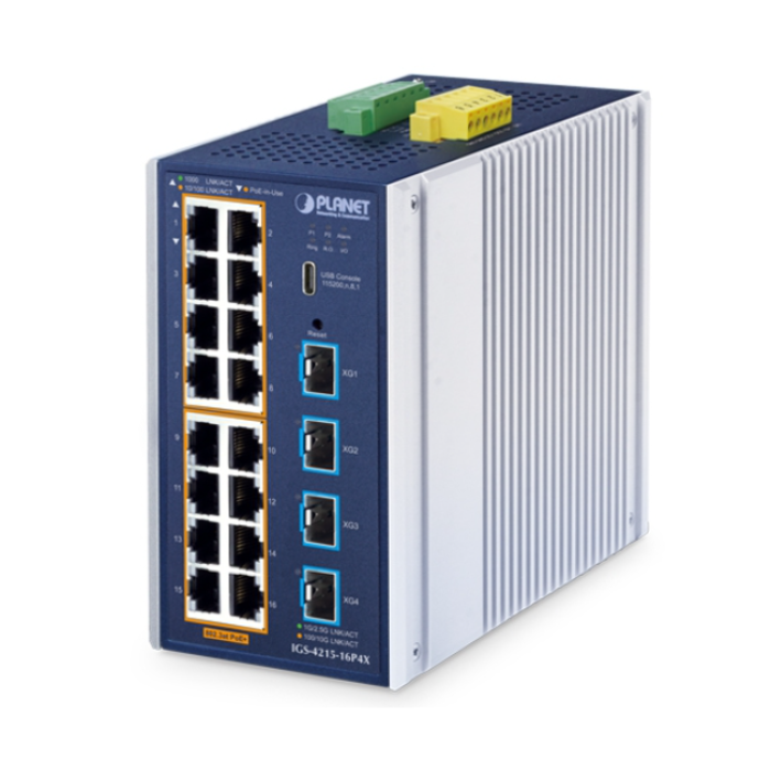 [IGS-4215-16P4X] Planet Industrial L2+ 16-Port 10/100/1000T 802.3at PoE + 4-Port 10G SFP+ Managed Ethernet Switch