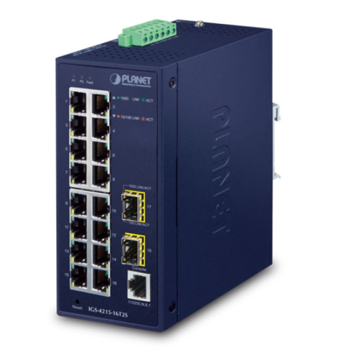 [IGS-4215-16T2S] Planet Industrial L2/L4 16-Port 10/100/1000T + 2-Port 100/1000X SFP Managed Switch