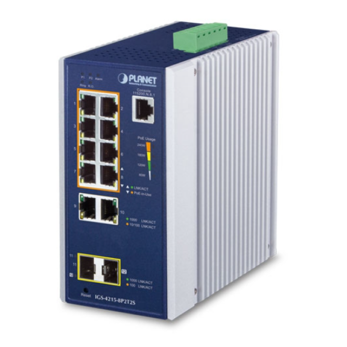 [IGS-4215-8P2T2S] Planet Industrial 8-Port 10/100/1000T 802.3at PoE + 2-Port 10/100/1000T + 2-Port 100/1000X SFP Managed Switch
