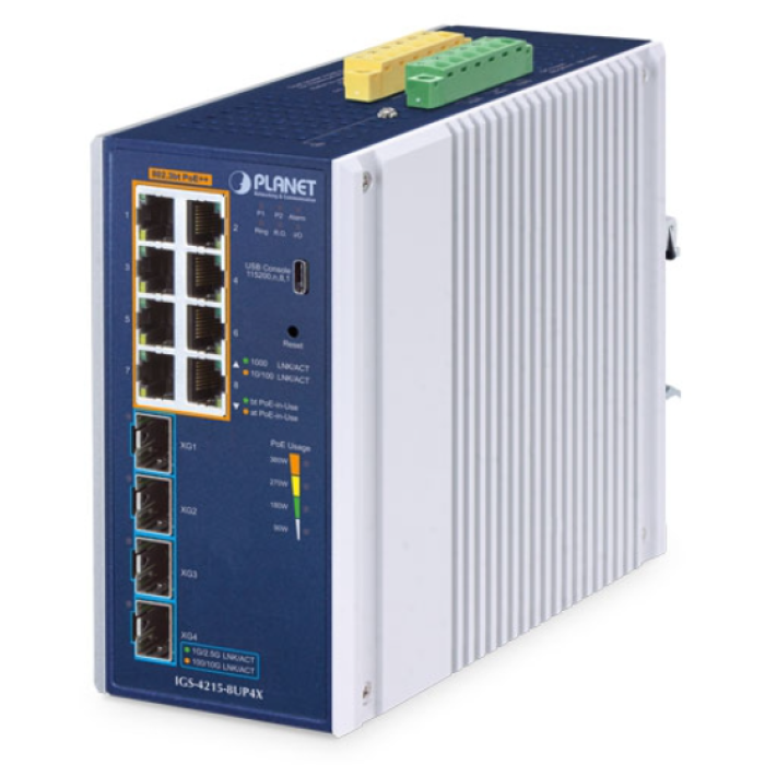 [IGS-4215-8UP4X] Planet Industrial L2+ 8-Port 10/100/1000T 802.3bt PoE + 4-Port 10G SFP+ Managed Ethernet Switch