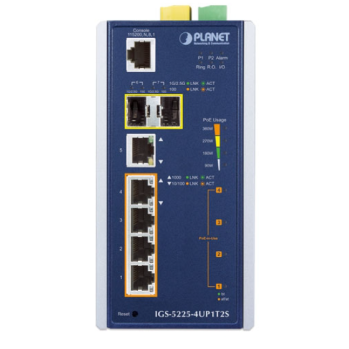 [IGS-5225-4UP1T2S] Planet Industrial L2+ 4-Port 10/100/1000T 802.3bt PoE + 1-Port 10/100/1000T + 2-Port 1G/2.5G SFP Managed Ethernet Switch