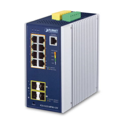 [IGS-5225-8P4S-12V] Planet Industrial L2+ 8-Port 10/100/1000T 802.3at PoE + 2-Port 100/1G SFP + 2-Port 100/1G/2.5G SFP Managed Ethernet Switch w/ 12V Booster