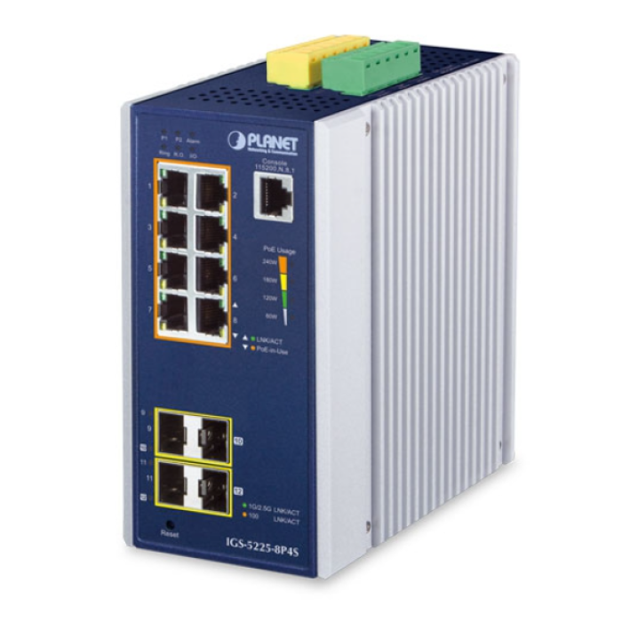 [IGS-5225-8P4S] Planet Industrial L2+8-Port 10/100/1000T 802.3at PoE + 2-Port 100/1G SFP + 2-Port 100/1G/2.5G SFP Managed Ethernet Switch