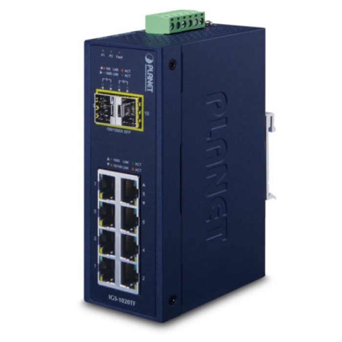 [IGS-1020TF] Planet Industrial 8-Port 100/1000T + 2 1000X SFP Ethernet Switch
