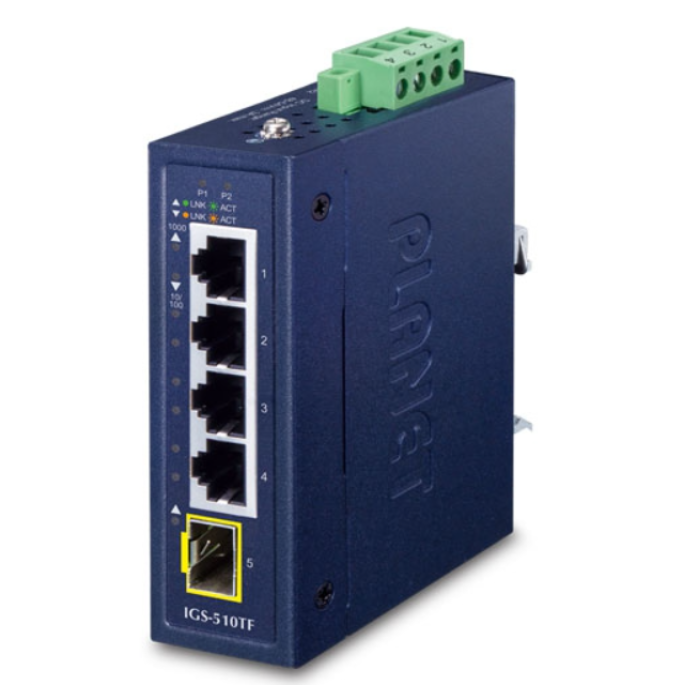 [IGS-510TF] Planet Industrial Compact 4-Port 10/100/1000T + 1-Port 100/1000X SFP Gigabit Ethernet Switch