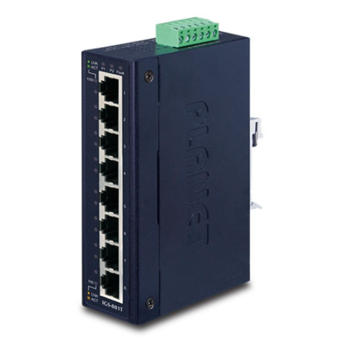 [IGS-801T] Planet Industrial 8-Port 10/100/1000T Industrial Gigabit Ethernet Switch (-40~75 degrees C operating temperature)