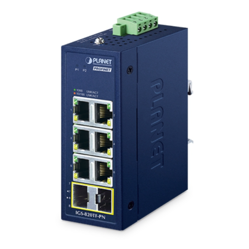 [IGS-820TF-PN] Planet Industrial Compact Industrial 6-Port 10/100/1000T + 2-Port 100/1000X SFP PROFINET Switch
