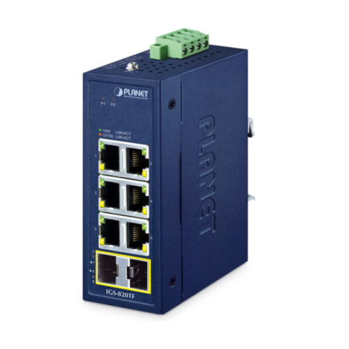 [IGS-820TF] Planet Industrial Compact Industrial 6-Port 10/100/1000T + 2-Port 100/1000X SFP Ethernet Switch