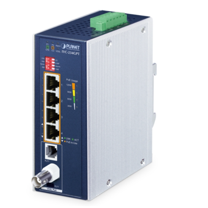 [IVC-234GPT] Planet Industrial 4-Port 10/100/1000T 802.3at PoE+ to VDSL2 Extender