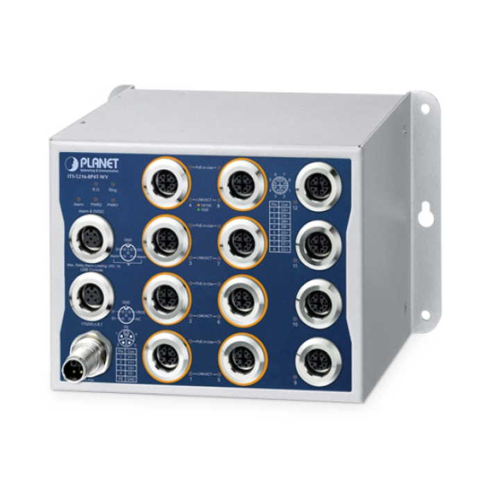 [ITS-5216-8P4T-WV] Planet Industrial L2+ 8-Port 10/100/1000T 802.3at PoE M12 + 4-Port 10/100/1000T M12 Managed Ethernet Switch