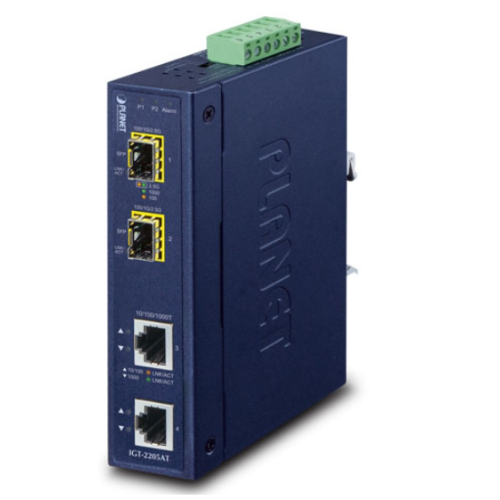 [IGT-2205AT] Planet Industrial 2-port 10/100/1000T to 2-port 100/1000/2500X SFP Media Converter