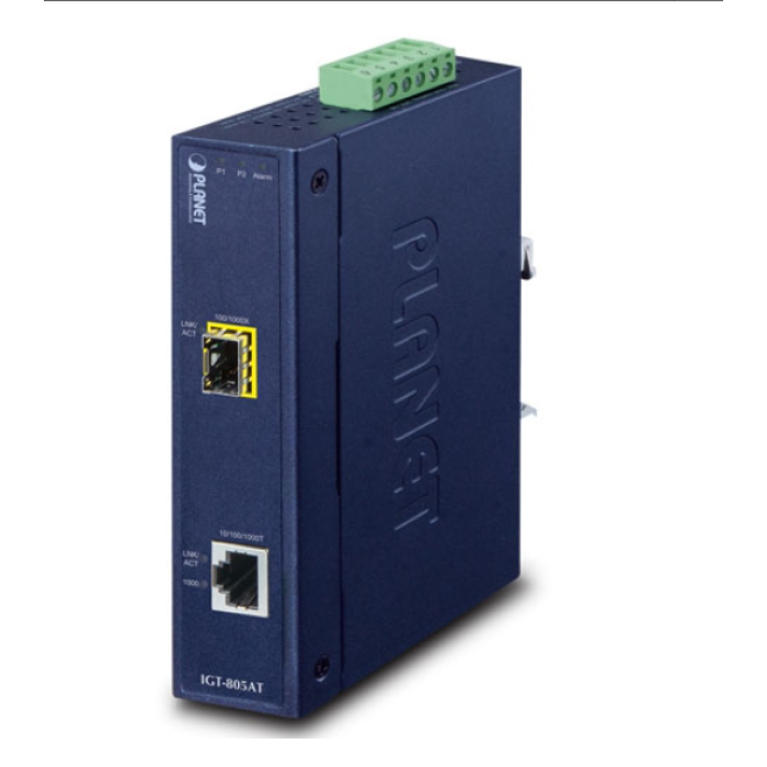 [IGT-805AT] Planet Industrial 10/100/1000BASE-T to 100/1000BASE-X SFP Media Converter