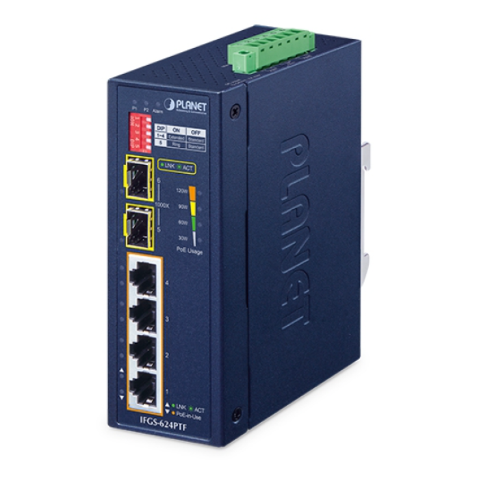 [IFGS-624PTF] Planet Industrial 4-Port 10/100TX 802.3at PoE + 2-Port 1000X SFP Ring Ethernet Switch