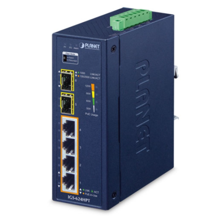 [IGS-624HPT] Planet Industrial 4-Port 10/100/1000T 802.3at PoE + 2-Port 100/1000/2500X SFP Ethernet Switch