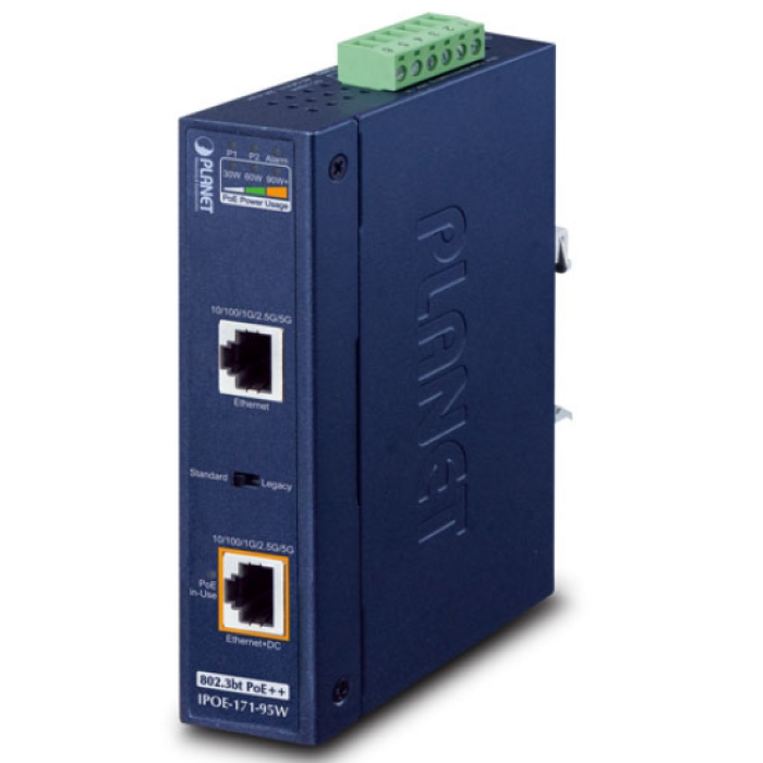 [IPOE-171-95W] Planet Industrial Single-Port Multi-Gigabit 802.3bt PoE++ Injector