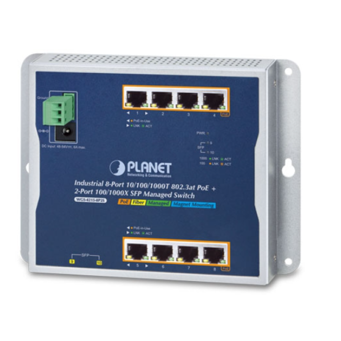 [WGS-4215-8P2S] Planet Industrial 8-Port 10/100/1000T 802.3at PoE + 2-Port 100/1000X SFP Wall-mount Managed Switch