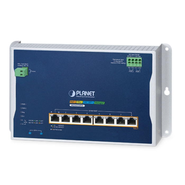 [WGS-4215-8P2X] Planet Industrial L2+ 8-Port 10/100/1000T 802.3at PoE + 2-Port 10G SFP+ Wall-mount Managed Ethernet Switch