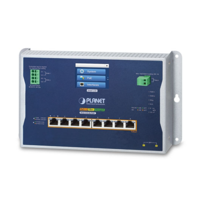 [WGS-5225-8UP2SV] Planet Industrial L2+ 8-Port 10/100/1000T 802.3bt PoE + 2-Port 1G/2.5G SFP Wall-mount Managed Switch with LCD Touch Screen