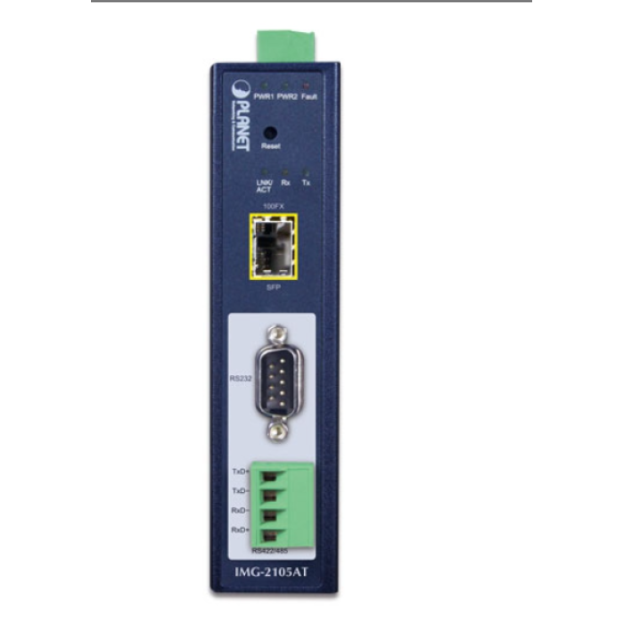 [IMG-2105AT] Planet Industrial IP30 Industrial 1-Port RS232/RS422/RS485 Modbus Gateway with 1-Port 100BASE-FX SFP