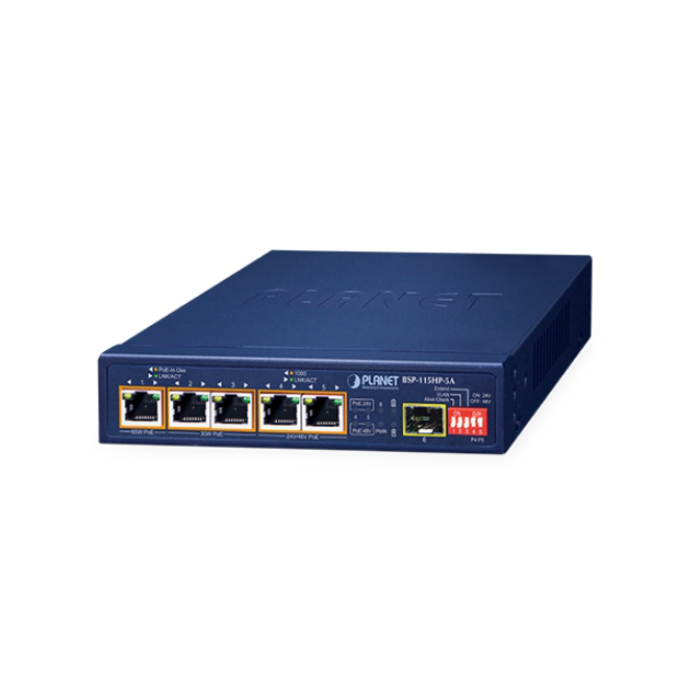 [BSP-115HP-5A] Planet Industrial 5-Port Hybrid PoE Solar PoE Switch with 1-Port 1000X SFP