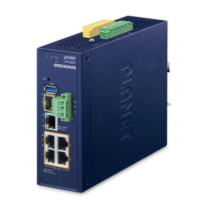 [IVR-300FP] Planet Industrial 4-Port 10/100/1000T 802.3at PoE + 1-Port 10/100/1000T + 1-Port 1000X SFP VPN Security Gateway