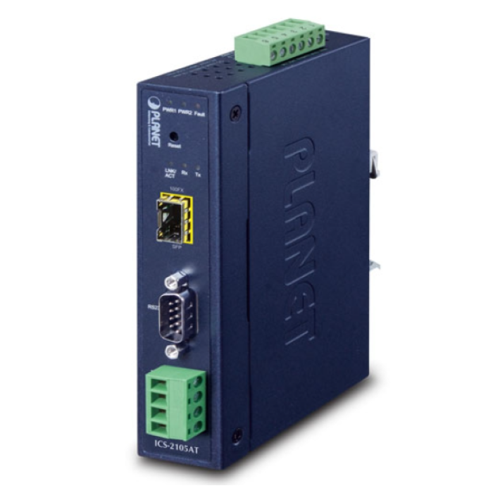 [ICS-2105AT] Planet Industrial 1-port RS232/422/485 Serial Device Server with 1-Port 100BASE-FX SFP (-40~75 degrees C)