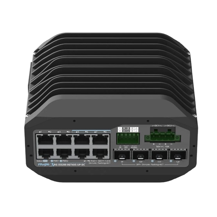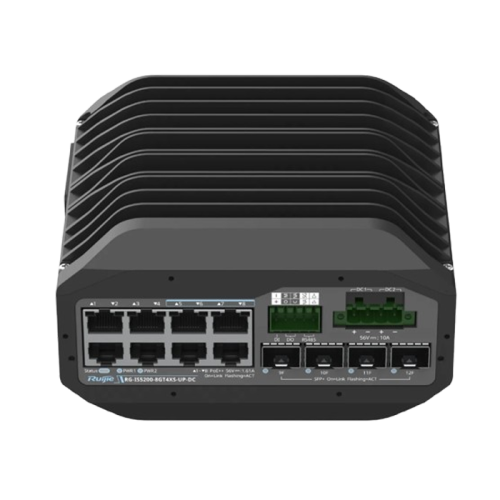 [RG-IS5200-8GT4XS-UP-DC] Ruijie Industrial Switch 8 x 1GE RJ45 ports, 4 x 10GE SFP+ ports, PoE/PoE+/PoE++, DIN rail mounting