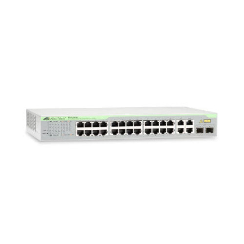 Allied Telesis WebSmart switch 24-port 10/100TX + 2 10/100/1000T + 2 SFP/1000T Combo Ports, US Power Cord.