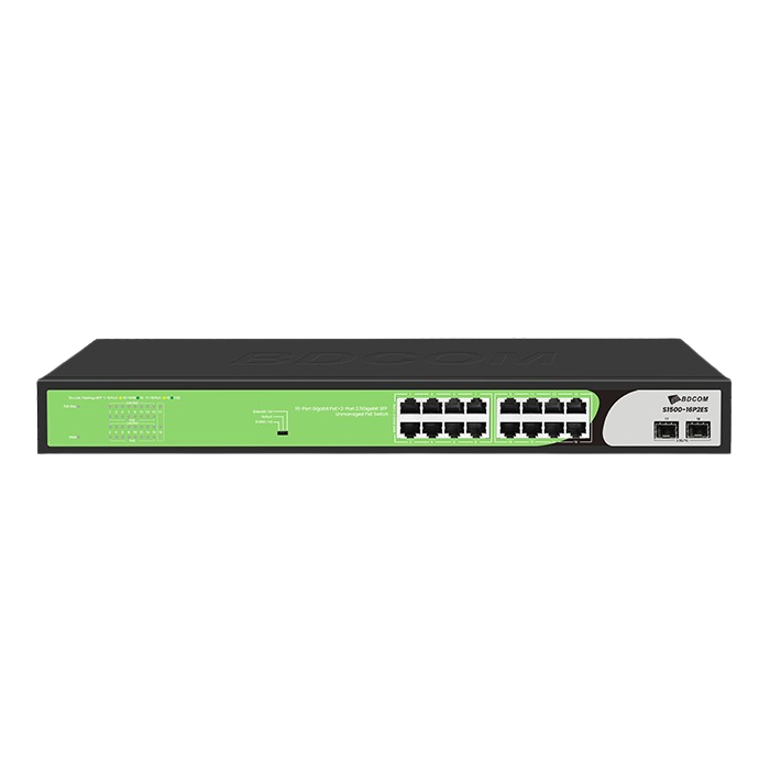 [S1500-16P2ES-H] BDCOM 2-Port Gigabit PoE++ 14-Port Gigabit PoE+ 2-Port 2.5G SFP Unmanaged PoE Switch