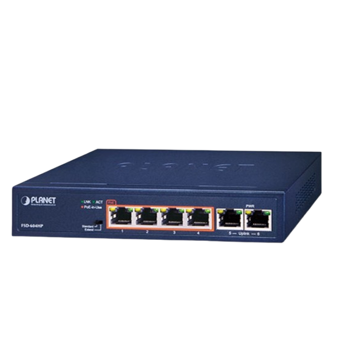 [FSD-604HP] Planet 4-Port 10/100TX 802.3af/at PoE + 2-Port 10/100TX Desktop Switch (60 Watts)