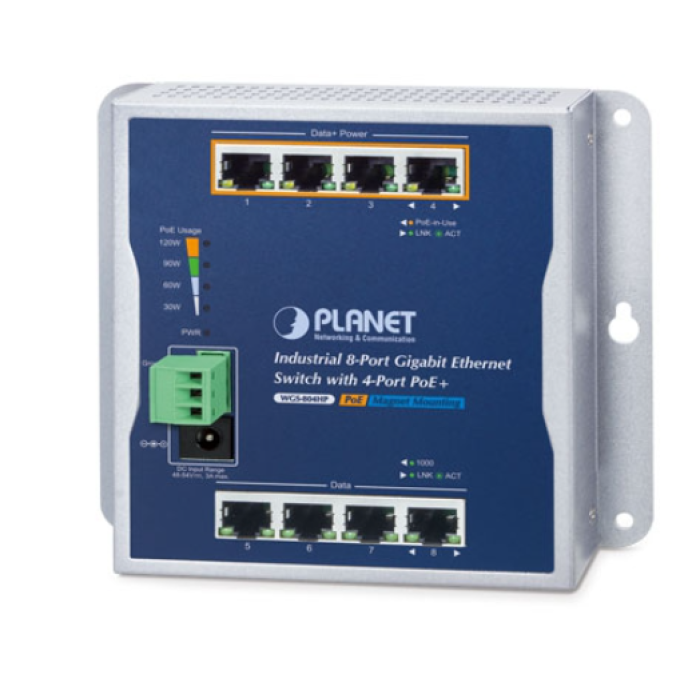 [WGS-804HP] Planet Industrial 8-Port 10/100/1000T Wall-mounted Gigabit Ethernet Switch with 4-Port PoE+